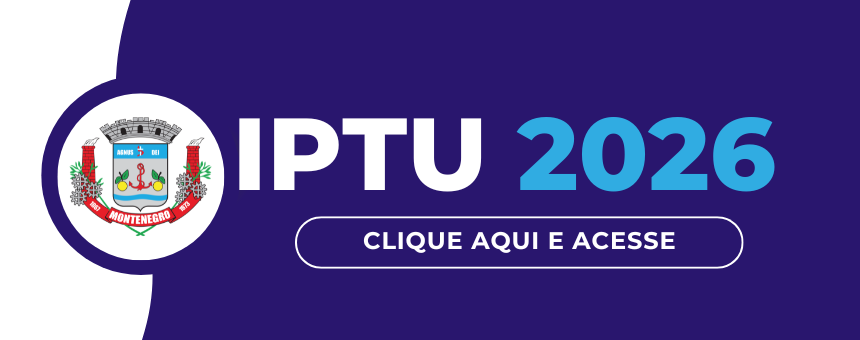 URL https://www.montenegro.rs.gov.br/servicos-dr/iptu-2025 Imagem Desktop Informe uma imagem para ser visualizada no desktop. Recomendado utilização uma imagem na proporcão de 3:1. Ex 1280x590px. Descrição para Desktop Caso preenchido, este valor será visualizado na versão desktop do Carrossel. Imagem Tablet Informe uma imagem para ser visualizada no Tablet. Recomendado utilização uma imagem na proporcão de 16:9. Ex 1280x720px Sem imagem Utilizar Título e Descrição do Desktop para Tablet não Título para Tablet Caso preenchido, este valor será visualizado na versão tablet do Carrossel. Descrição para Tablet Caso preenchido, este valor será visualizado na versão tablet do Carrossel. Imagem Celular Informe uma imagem para ser visualizada no celular. Recomendado utilização uma imagem na proporcão de 4:3. Ex 800x600px. Utilizar Título e Descrição do Desktop para Celular não Título para Celular Caso preenchido, este valor será visualizado na versão celular do Carrossel. Descrição para Celular Caso preenchido, este valor será visualizado na versão celular do Carrossel. Configurações Nome curto Esse nome será exibido na URL. iptu-2025